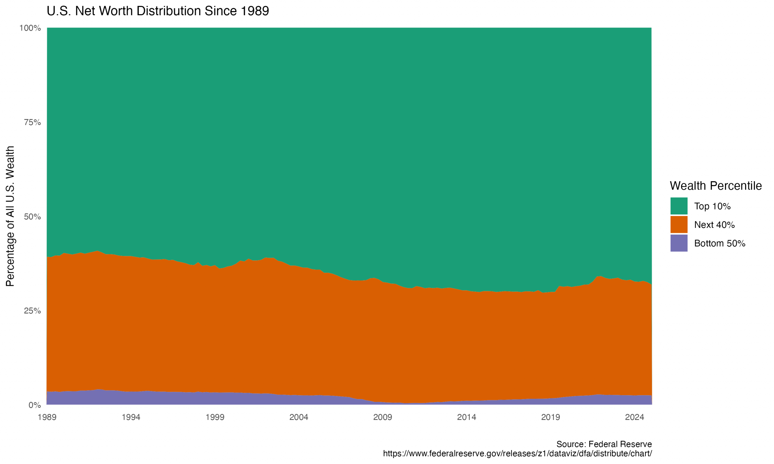 The real problem is that the bottom 50% controls virtually no wealth while the top 10% controls nearly 70% of U.S. wealth. That is the concentration of wealth that needs to be addressed.